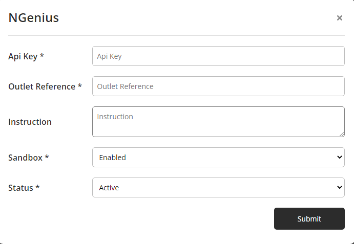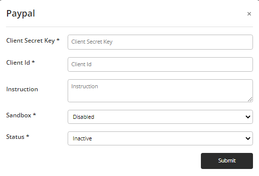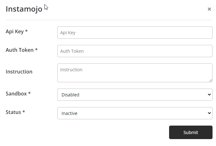 enable, status isactive, then click onsubmit. It will save the credentials and the payment method will be activated in the system.