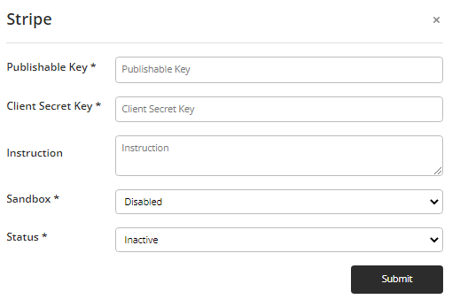 active, then click onsubmit. It will save the credentials and the payment method will be activated in the system.