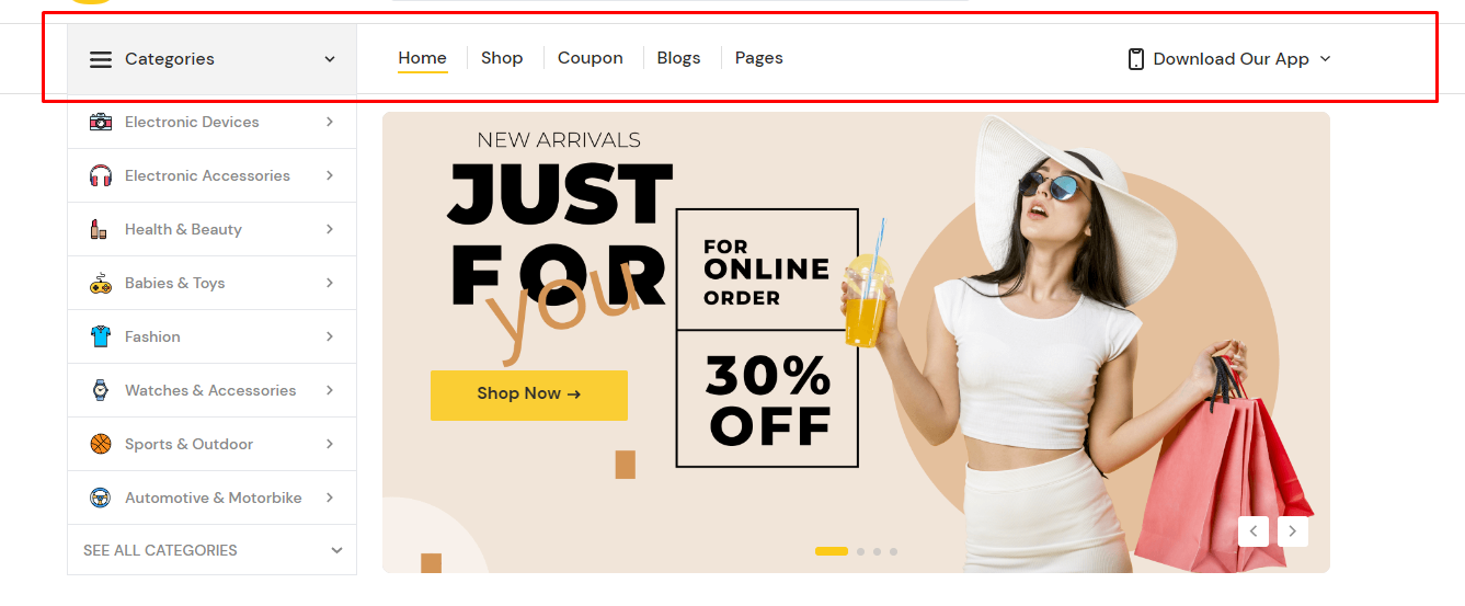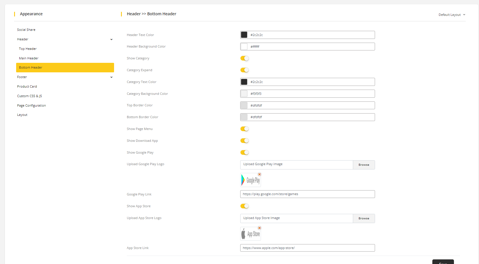 Show Categoryis enable, cateogry section show on the header, You can choose category text color and Background color by selectingCategory Text ColorandCategory Background Color. - If