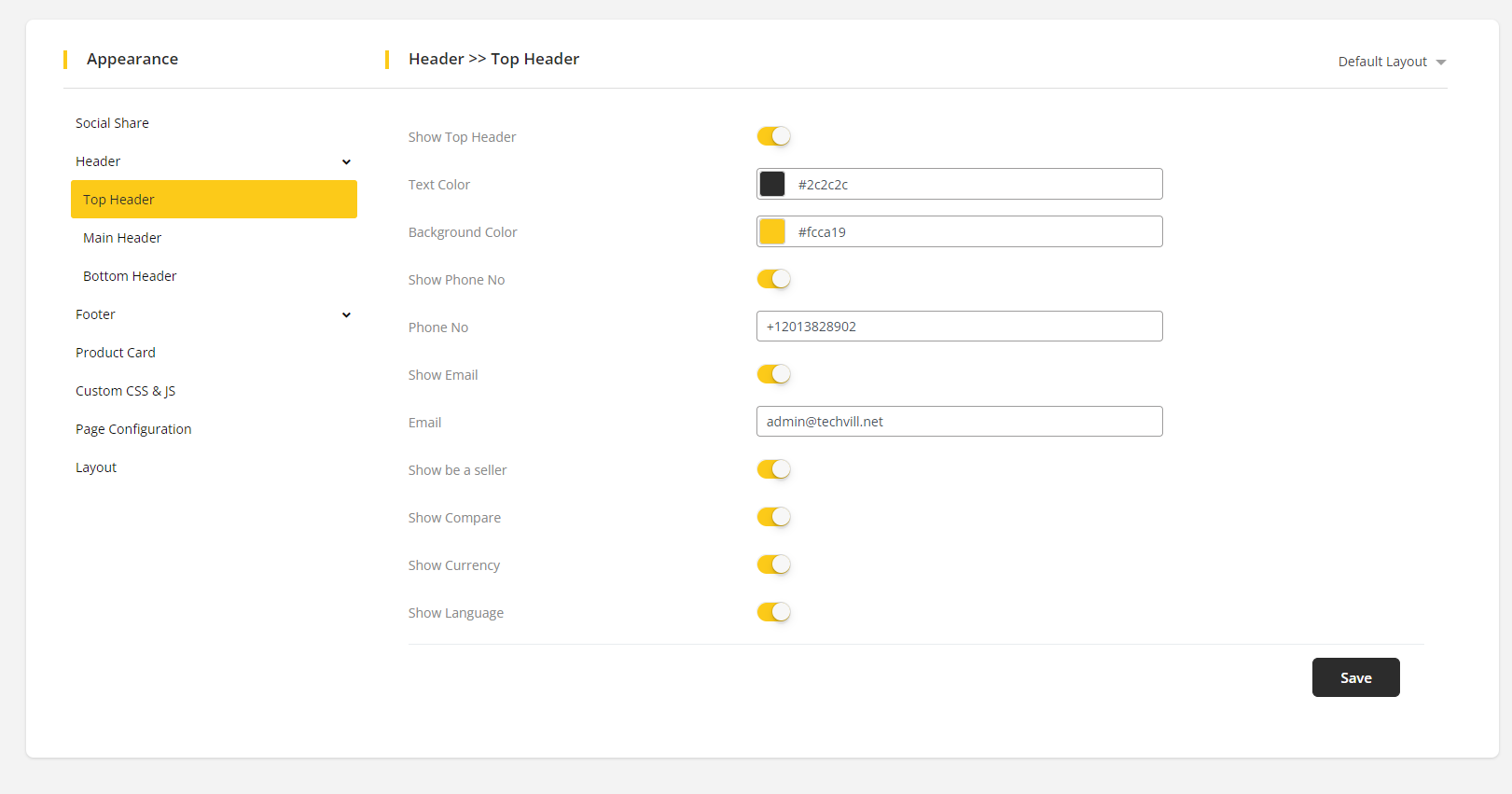 Phone NoandEmailfield. IfShow Phone NoandShow Emailis enable, then it will show in the top header. - If