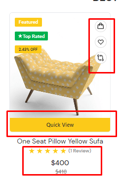 Show Add To Cart,Show Wishlist,Show Compare,Show Quick View,Show Review,Show PriceandShow Badgeis enable, then it will show on product view. - Put value of