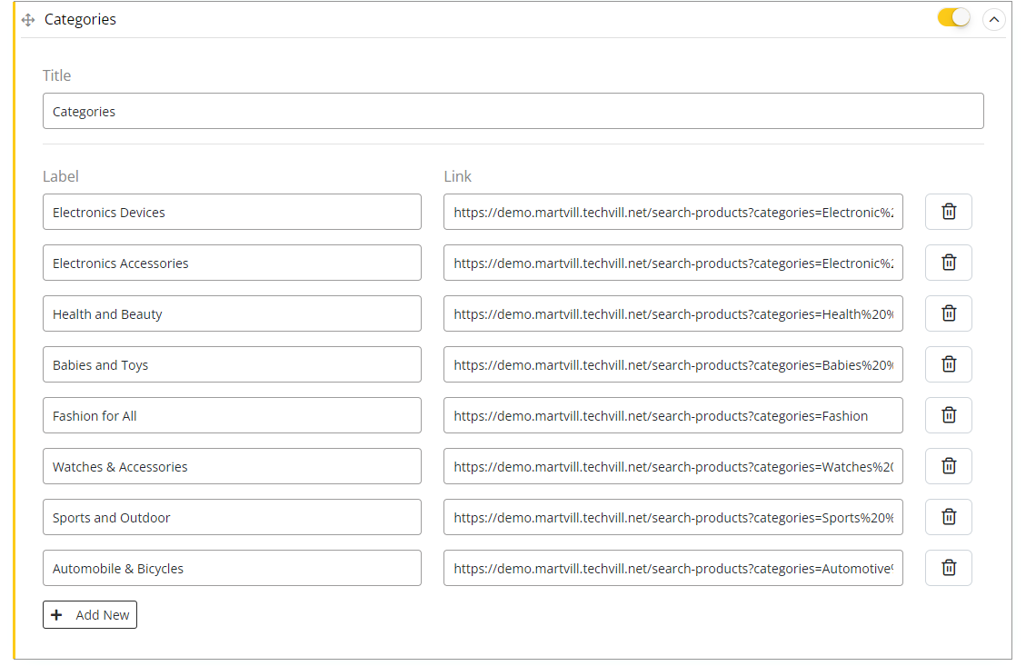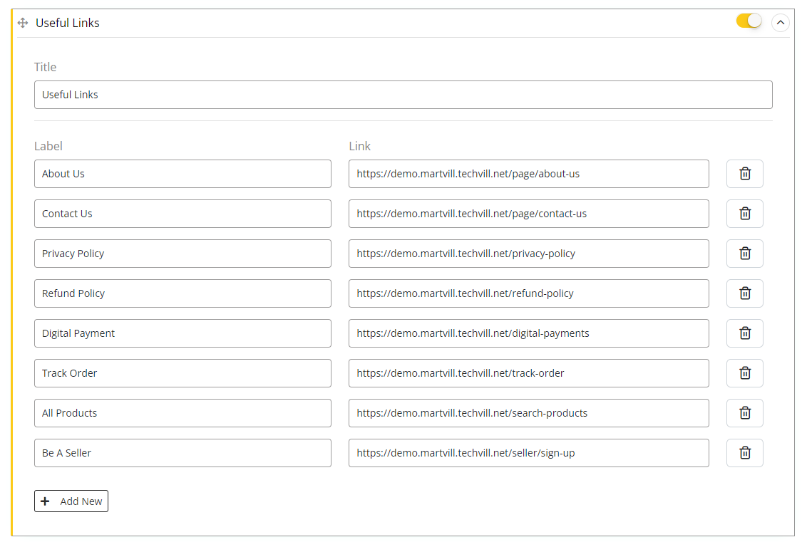 Add New. - If the section is disable, then this elements will not show on the footer.