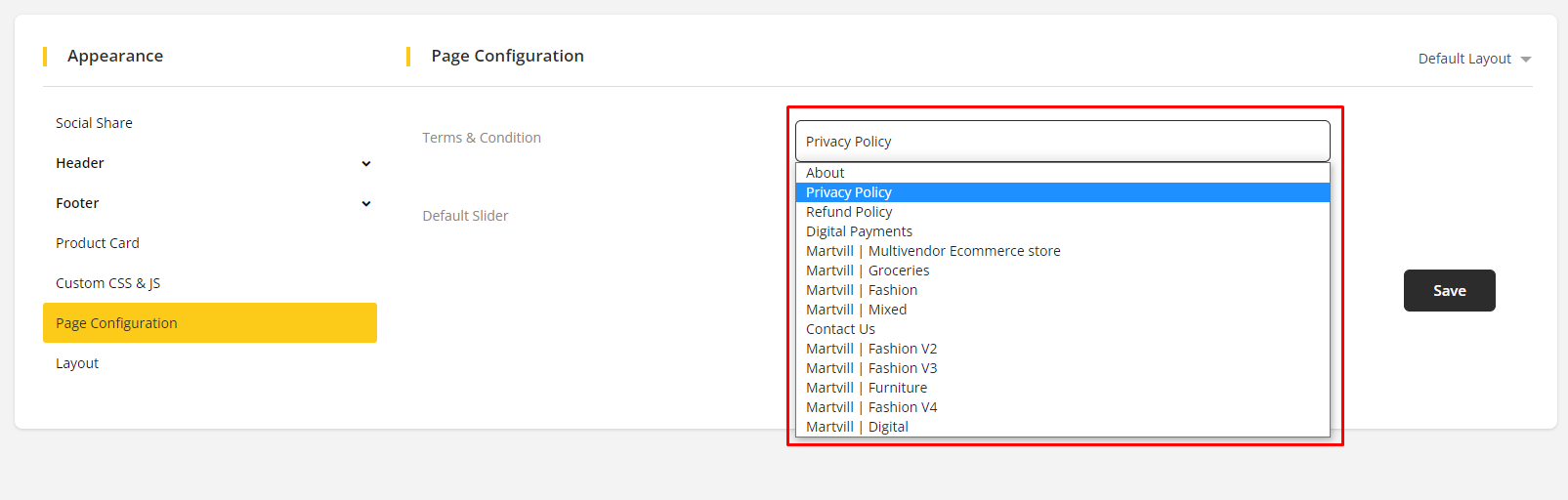 Terms & Conditionto choose which page you want to show for Term & Condition on Signup page.