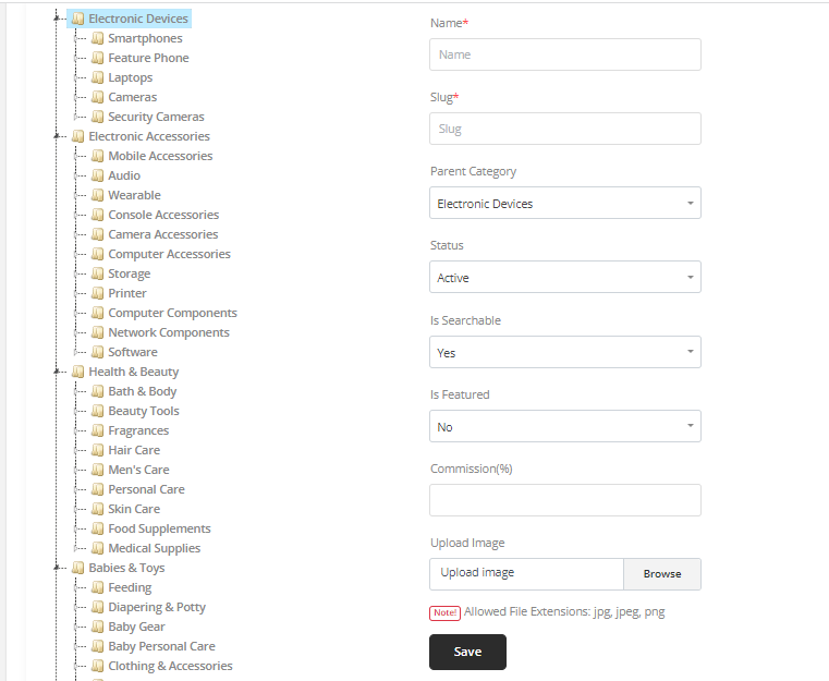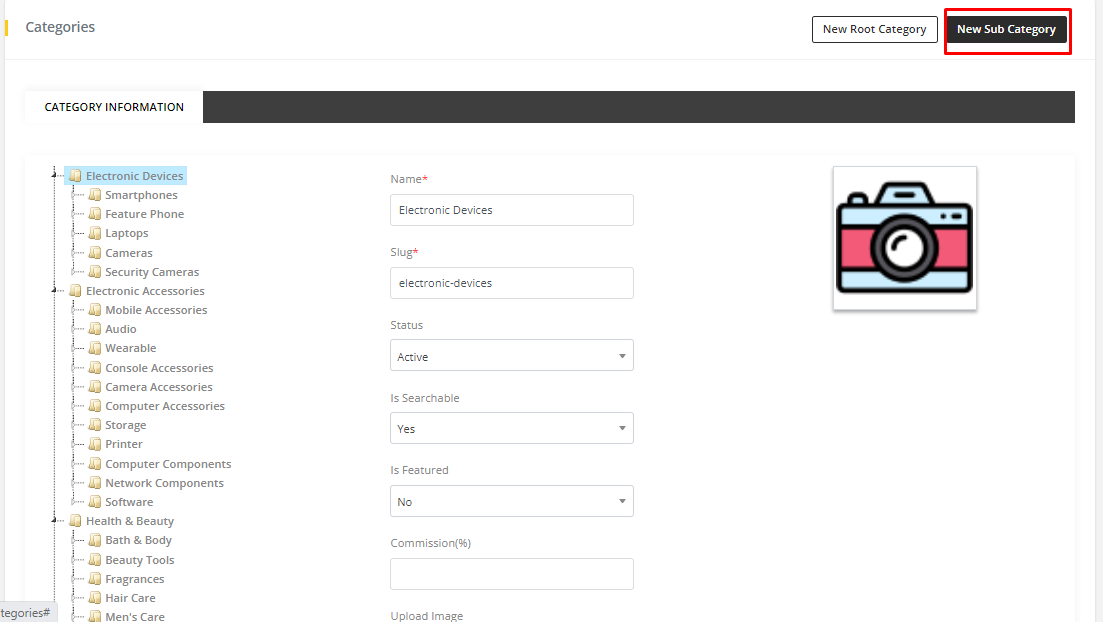 - Click New Sub Category. Fill-up the form just like root category then Click Save.