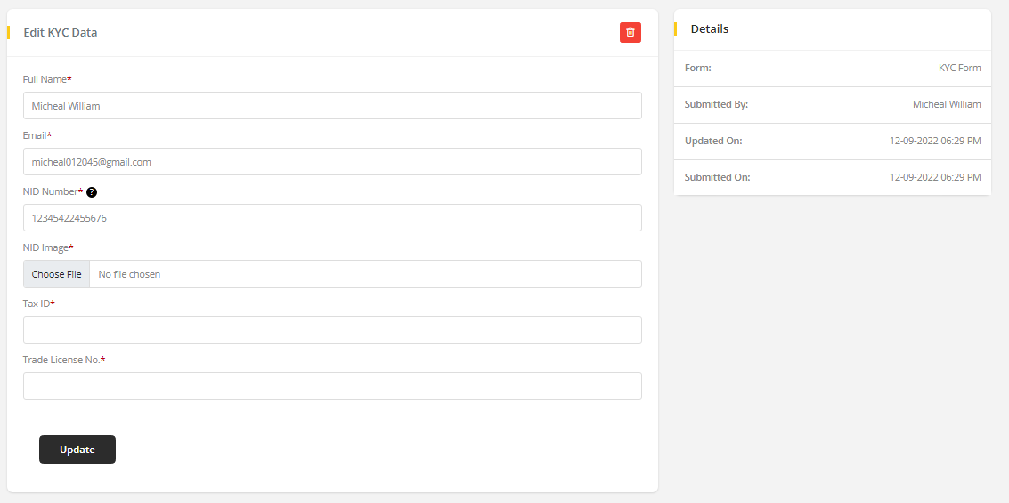 - Vendor can not delete their KYC form or any information.