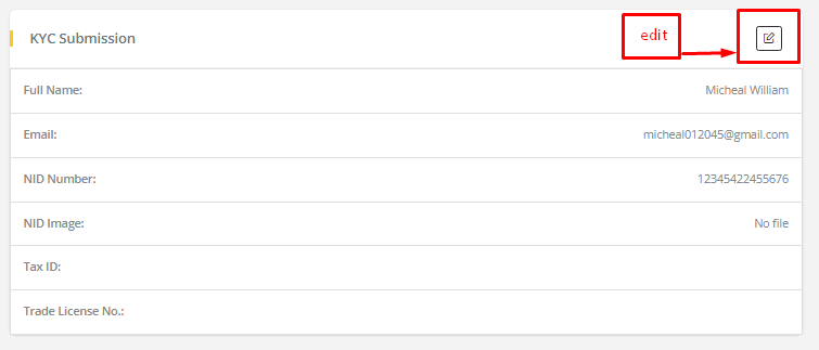 Edit from KYC submission list