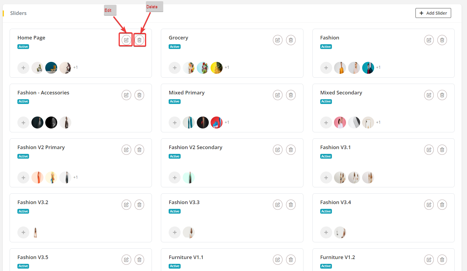 - By clicking on Edit and Delete icon, Sliders can be