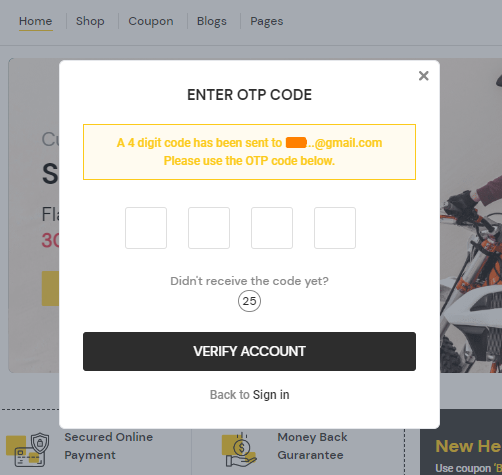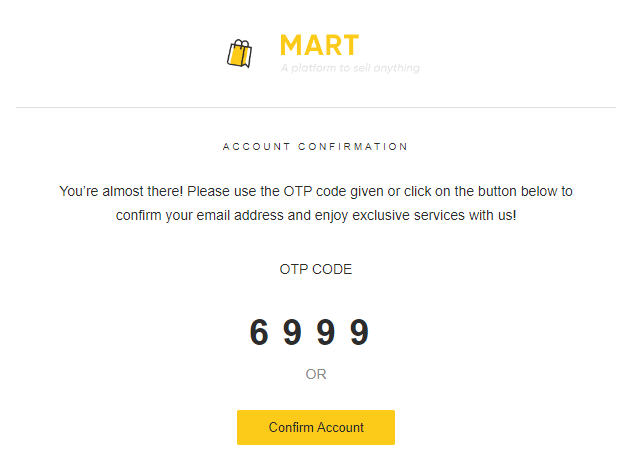 - A verification link or an OTP or both will be sent to the user's email account that he/she has to provide to ensure that the account is verified.